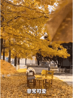 这场面也太唯美了用银杏叶粘满的椅子、桌子上还放了个毛绒小熊